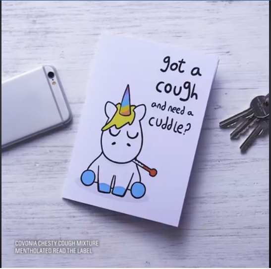 Symphath(ish). THE BRAND: Covonia THE BRIEF: Develop a new, sharable, on-brand social media concept.THE IDEA: A sympathy card with a capful of tough love. Grow a pair (of horns, obviously).